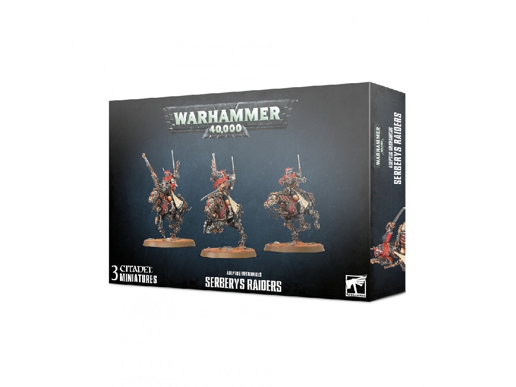Serberys Raiders are long-range scouts and outriders. They excel at outflanking enemy forces and picking off unprotected assets. Advanced ocular arrays implanted into the riders’ skulls are noospherically linked with their mounts, ensuring maximum accuracy, while finely calibrated olfactory sensors and a suite of sensitive augury equipment make them dogged and feared trackers.