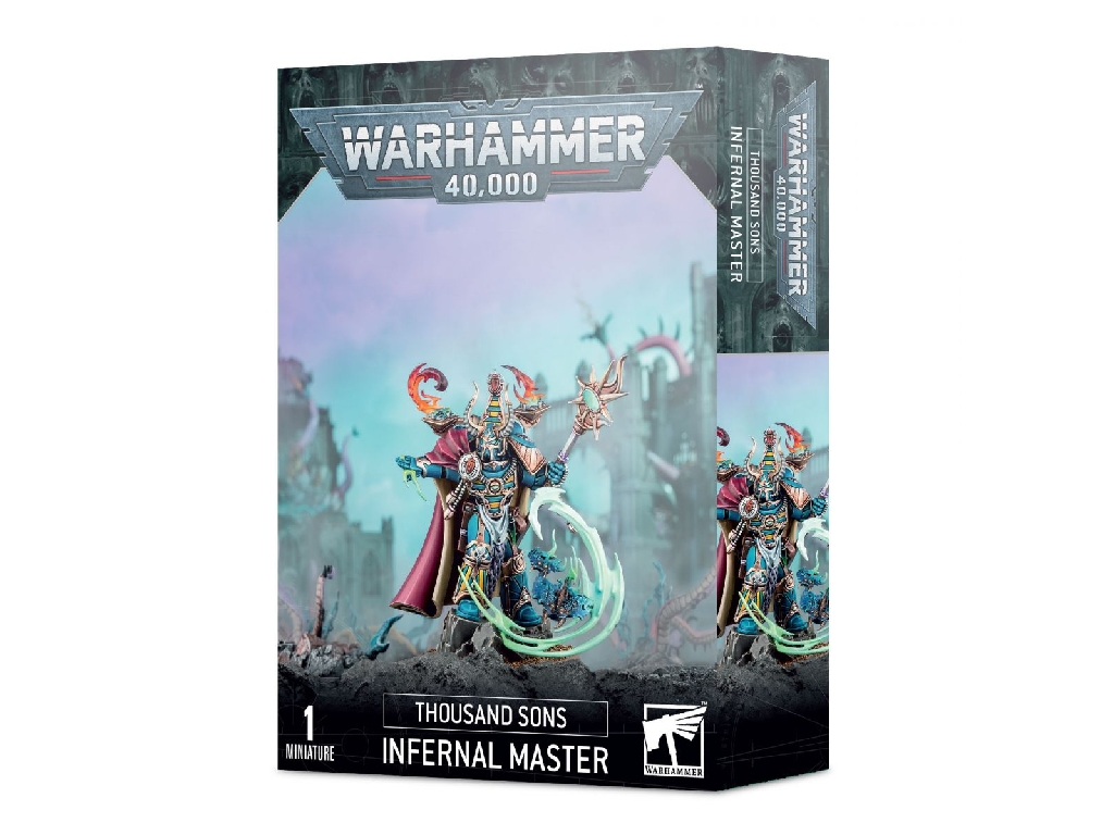 The Infernal Master empowers your Thousand Sons force through a variety of potent Infernal Pacts, enhancing allies and debilitating foes with the trickery and insight of his daemonic familiars. A psyker himself, the Infernal Master can also wield powerful sorcery and challenge enemies leaders to combat with his coruscating force stave.