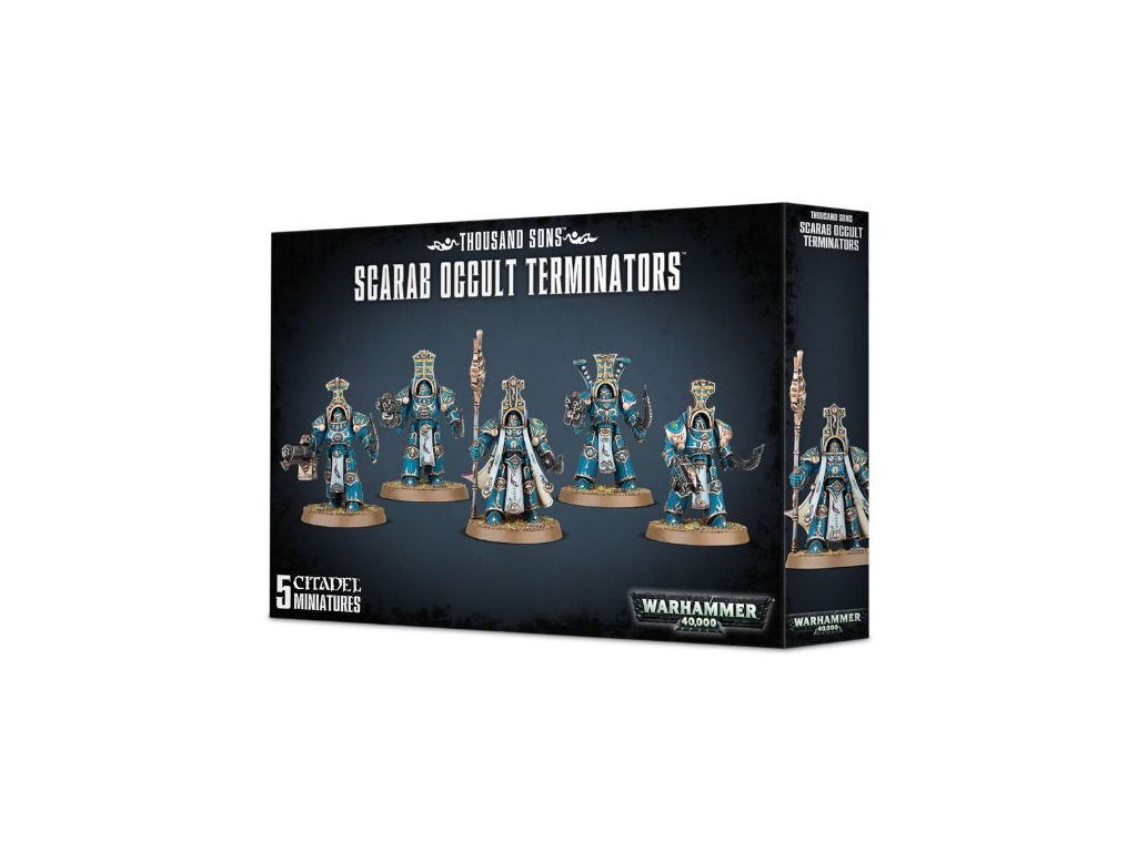 This multi-part plastic kit contains the components necessary to assemble 5 Scarab Occult Terminators, armed with Inferno combi-bolters and khopesh blades. One model can be assembled with an included heavy warpflamer, soulreaper cannon or hellfyre missile rack. One model can be assembled as a Scarab Occult Sorcerer, who can exchange his combi-bolter for an included power sword. Supplied with 5 Citadel 40mm Round bases.