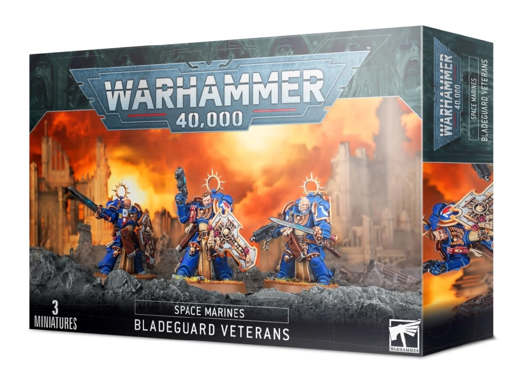 This 78-part plastic kit makes three Bladeguard Veterans and is supplied with three 40mm Citadel round bases. It is also supplied with an Ultramarines Infantry transfer sheet.