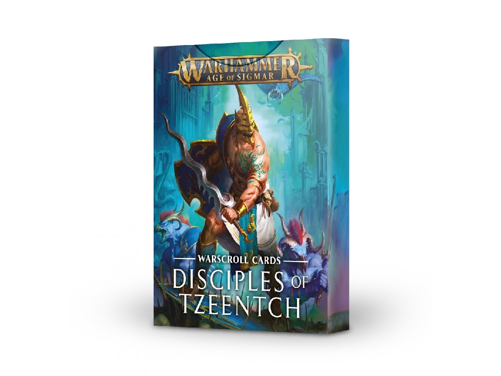 This set contains 30 warscroll cards, covering every unit and endless spell in Battletome: Disciples of Tzeentch. It also includes two doubled-sided push-out card token sheets, designed to help you track command points, hidden agendas, and other ongoing effects.