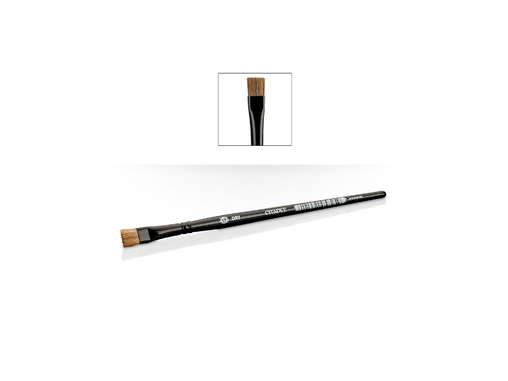 This medium brush (M Dry) features a light ox hair and synthetic blend of bristles for stiffness and durability. The flat profile means a consistent coverage on raised areas - ideal for drybrushing!