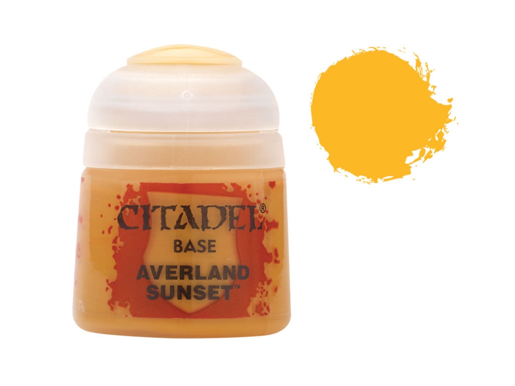 This pot contains 12ml of Averland Sunset, one of 34 Base paints in the Citadel Paint range. As with all of our paints, it is a non-toxic, water-based acrylic paint designed for use on plastic, metal, and resin Citadel miniatures.