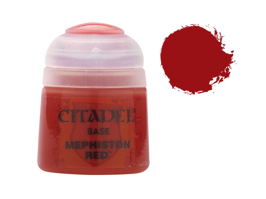 This pot contains 12ml of Mephiston Red, one of 34 Base paints in the Citadel Paint range. As with all of our paints, it is a non-toxic, water-based acrylic paint designed for use on plastic, metal, and resin Citadel miniatures.