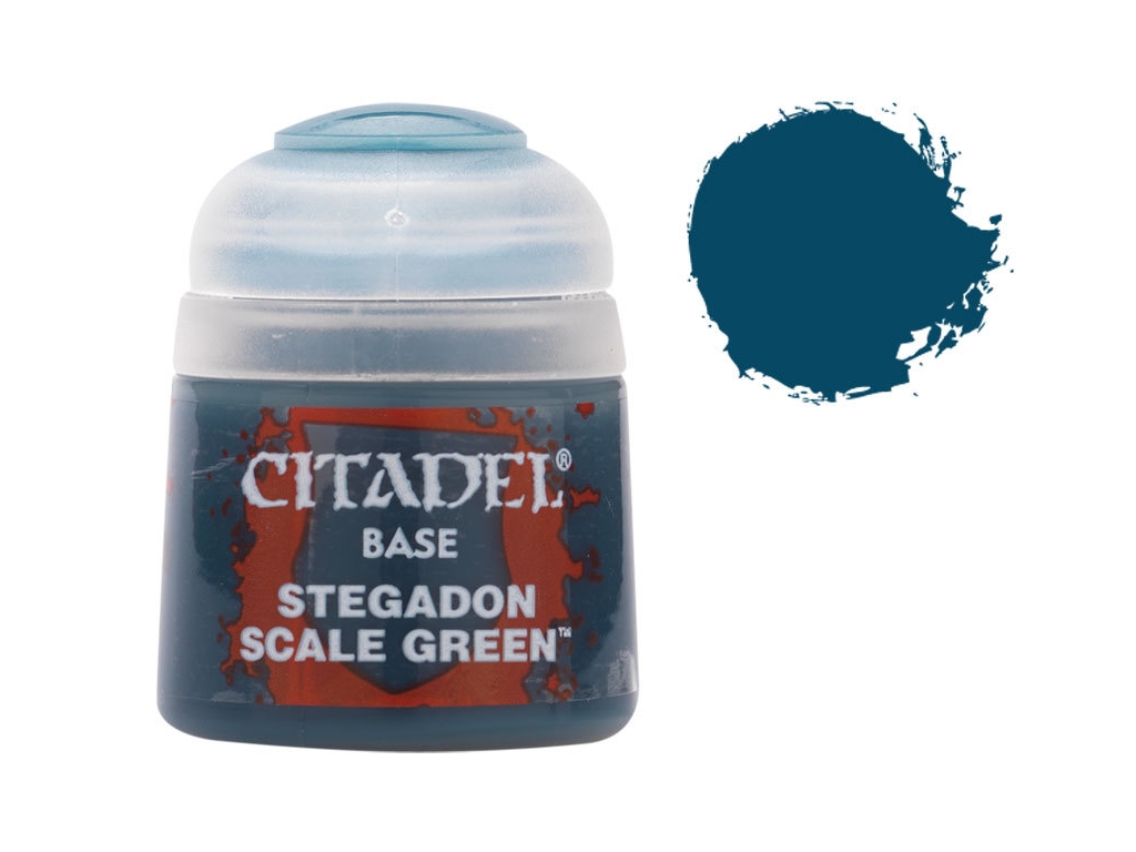 This pot contains 12ml of Stegadon Scale Green, one of 34 Base paints in the Citadel Paint range. As with all of our paints, it is a non-toxic, water-based acrylic paint designed for use on plastic, metal, and resin Citadel miniatures.