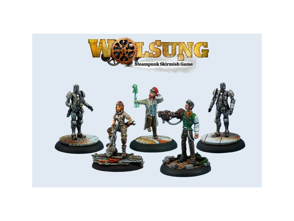 The set consist of 5 28mm, not painted miniature cast in white metal. All minis provided with a 30mm regular plastic wround base. Thorvald Nielsgaard (1) - Created by Krysa Project Alice Tinkerly (1) - Created by Rafał Cyman Lab Assistant (1) - Created by Rafał Cyman Lab Golem - walking (1) - Created by Krysa Project Lab Golem - standing (1) - Created by Krysa Project Download free rules for Wolsung SSG on /www.wolsung-ssg.com/
