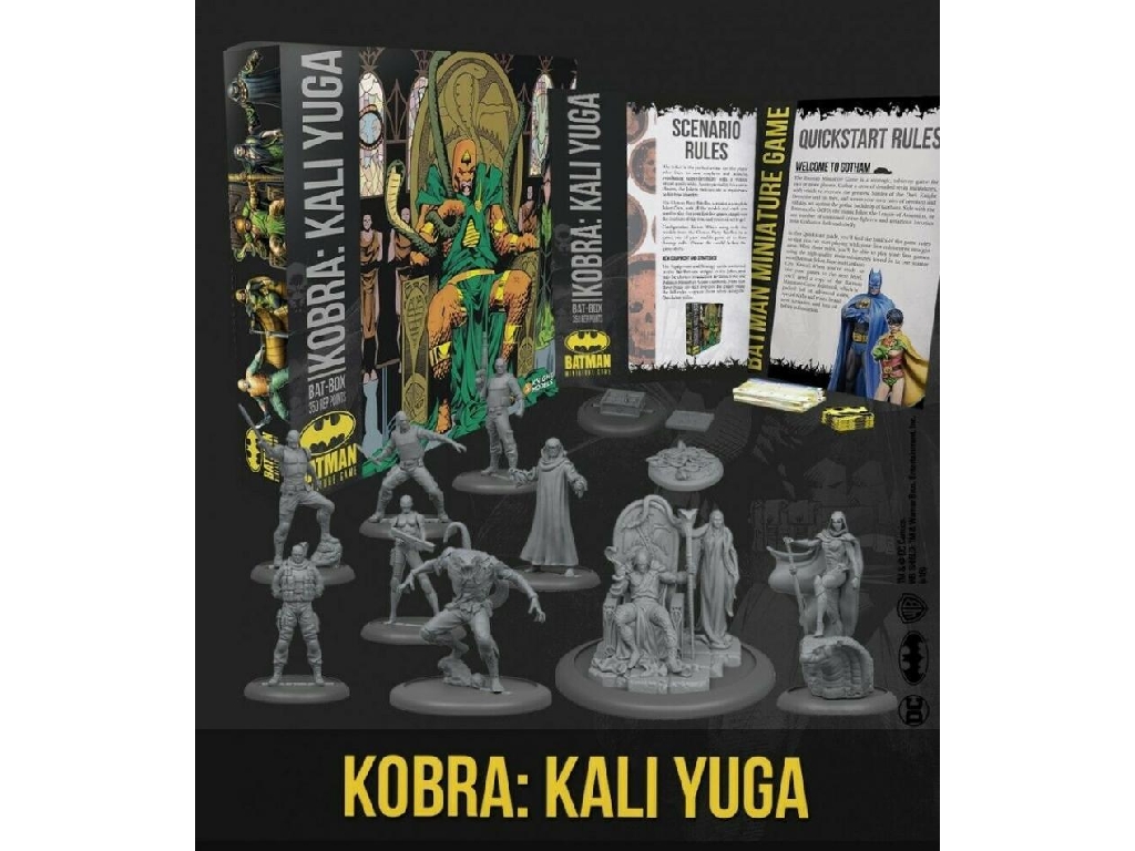 The Kobra Bat-Box contains a complete Cult Crew of 11 finely detailed resin miniatures, equipment cards, a unique Kobra Bomb Objective, Kobra scenario, and a set of Quickstart rules. In addition, this box includes the new Faith rules, bringing the power of zealot cults to the Batman Miniature Game for the first time.