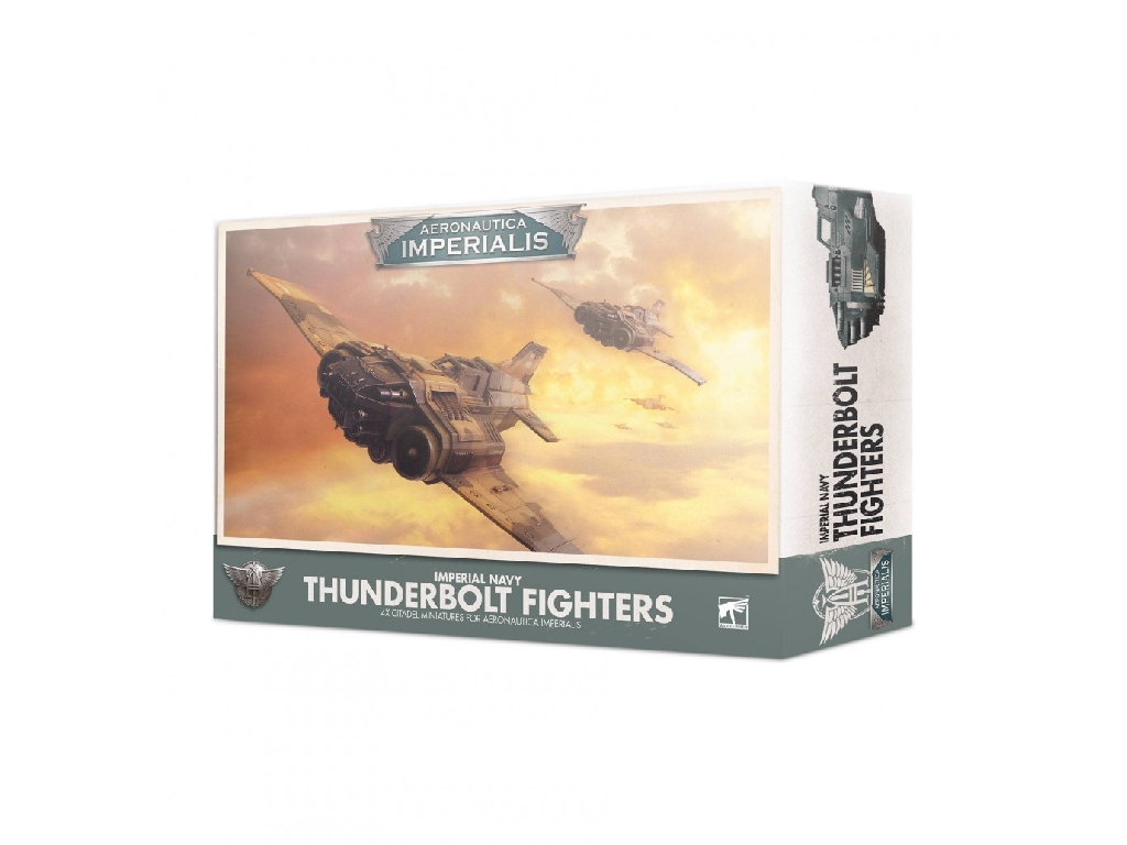 - 4x multipart plastic Imperial Navy Thunderbolt Fighter miniatures (Any of these miniatures can instead be assembled as Thunderbolt Fury Fighters equipped with avenger bolt cannons instead of quad autocannons. The kit also includes a selection of hellstrike missiles, skystrike missiles and wing bombs to upgrade your miniatures with.)