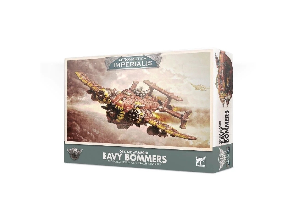 Eavy Bommers are one of the largest planes used in an Ork Air Waaagh! They are built with sustained bombardment in mind, and are recognisable by their distinctive engine sound – deeper in pitch and audible over the drone of all smaller Ork aircraft. It's not just the rumble of an engine, it's the sound of doom.