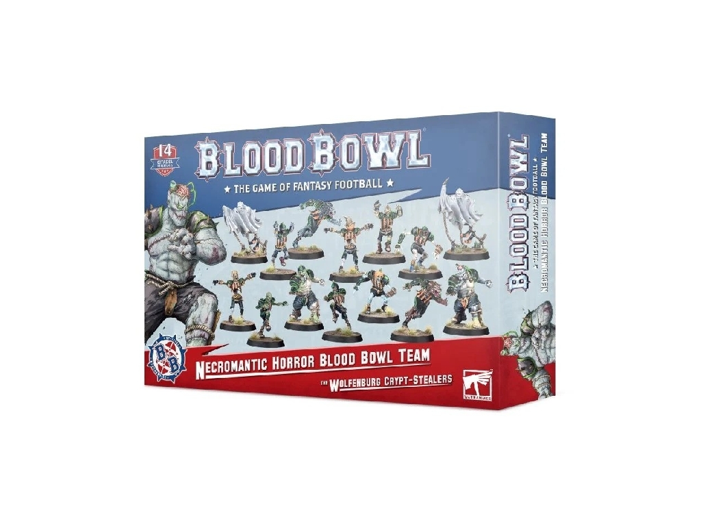 Blood Bowl is a gloriously violent game, but the best players don't let anything as pedestrian as death keep them down. The Necromancers of Sylvania discovered some time ago that their magical talents made for a viable career as a coach. They soon began making dark pacts with Ghouls, Wraiths, and even Werewolves – or simply stitching together Flesh Golems from the beefiest body parts they could scare up.