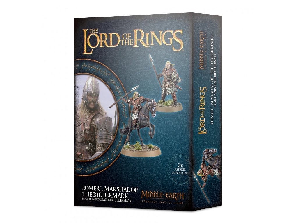 Éomer, Marshal of the Riddermark is a multipart plastic kit supplied as 2 models, 1 on foot and 1 mounted and charging. Both models feature options for a helmeted or unhelmeted head, as well as a choice of throwing spear or sword in one hand, and either a shield or a helmet in the other. Both models are clad in heavy armour, and the horse can either be assembled unarmoured or with scale mail barding.