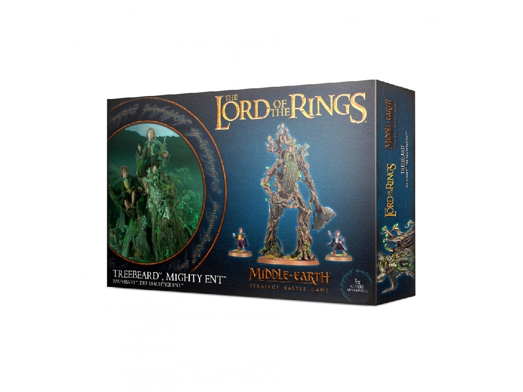This kit comprises 63 plastic components with which you can assemble 1x Treebeard (who can be assembled with or without ‘mounted’ versions of Merry and Pippin), 1x Meriadoc Brandybuck on foot, and 1x Peregrin Took on foot. It comes supplied with 1x Citadel 60mm Round Base and 2x Citadel 25mm Round Bases.