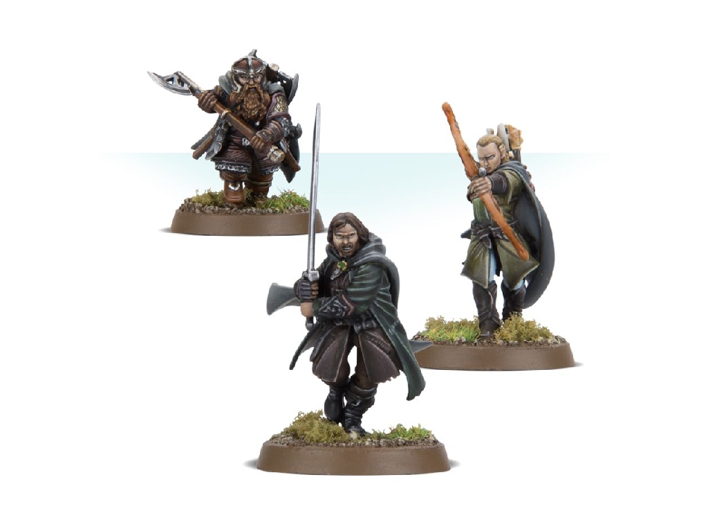 This plastic kit builds three Citadel miniatures representing Aragorn, Legolas and Gimli, the Three Hunters, as they appeared at the docks of Harlond in The Lord of the Rings: The Return of the King™.