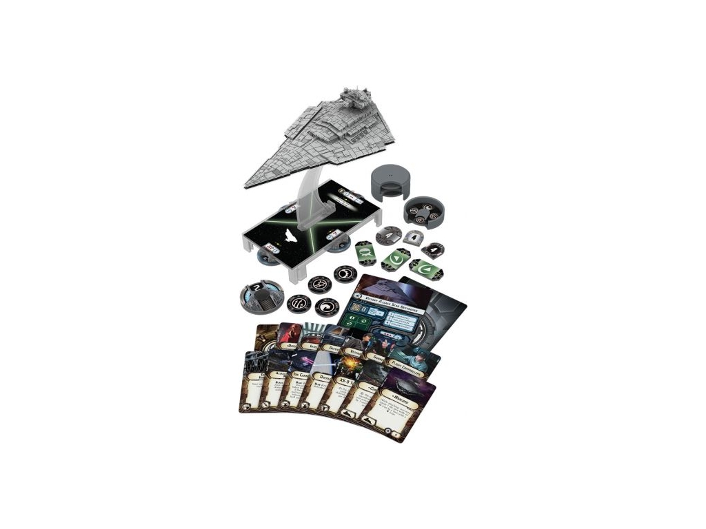From the Armada Core Set, the Victory-class Star Destroyer is the largest and most powerful ship which forms the core of the Imperial Navy during the Galactic Civil War. Measuring roughly 900 metres in length, over 5000 sport crew and a dagger shaped design allowing them to focus all their weapons on their forward firing arcs the Star Destroyer is a great way to strengthen your Imperial Force.\r\n\r\nThis box includes one sculpted and pre-painted miniatures Star Destroyer, requisite tokens and command dials, a dozen ship upgrades and upgrade cards.