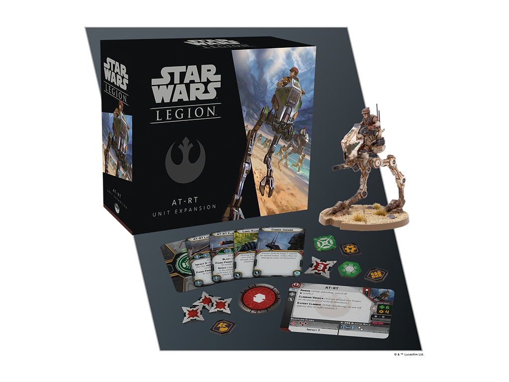 The AT-RT Unit Expansion includes a single new AT-RT miniature for you to add to your Rebel army, complete with three different gun attachments that can be attached to your miniature. Along with the AT-RT, you’ll find the associated unit card and an assortment of upgrade cards for you to enhance your AT-RT and other units.