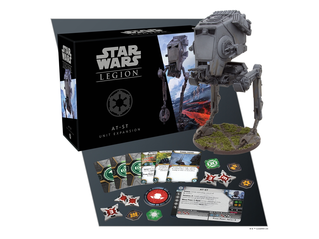 An AT-ST is an awe-inspiring sight to the average foot soldier. It towers above the battlefield, stalking inimically forward on mechanized legs and raining a hail of fire and death from its laser cannons and powerful weapons systems. With the AT-ST Unit Expansion for Star Wars™: Legion, you’ll find a single finely sculpted, massive AT-ST miniature, which can be assembled to loom over the battlefield and provide a rallying point for your entire army. Alongside this beautiful miniature, you’ll find an assortment of all the unit cards and upgrade cards that you’ll need to fully integrate the AT-ST into the Empire’s war machine—and your armies.