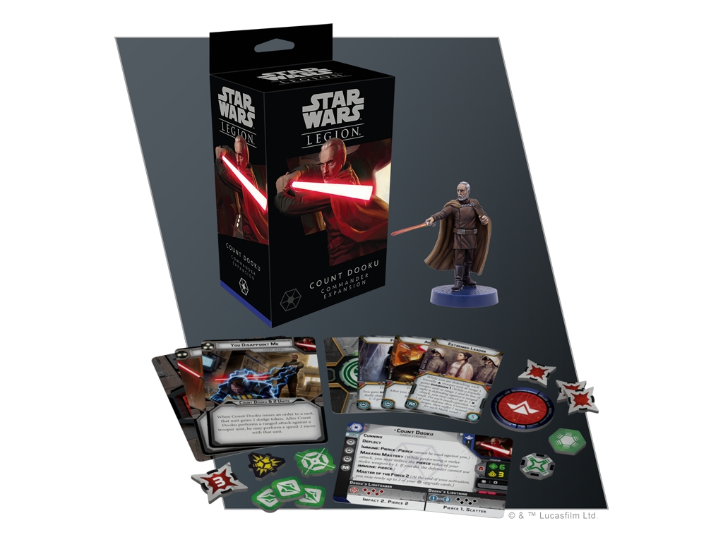 Within the Count Dooku Commander Expansion, you'll find one unpainted and finely detailed Count Dooku miniature challenging all comers with his lightsaber. Additionally, four upgrade cards let you explore the depths of Dooku's Force powers, while three command cards invite you to make him a central piece of your army's strategy.