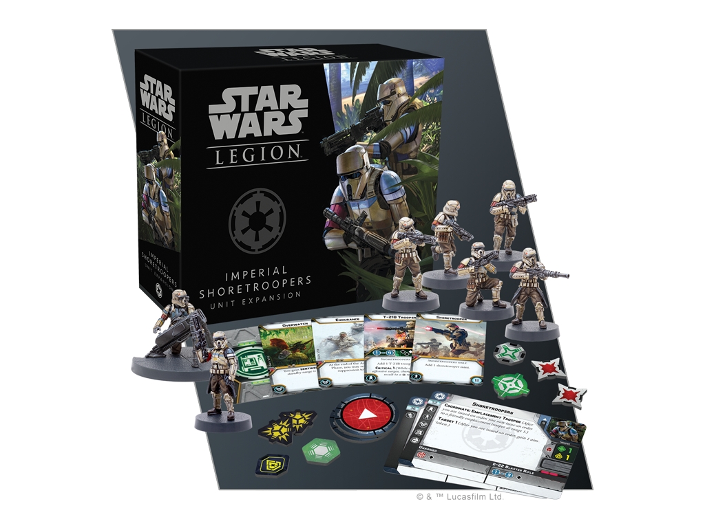 Within this expansion, you’ll find seven unique, unpainted Imperial Shoretrooper miniatures to add to your Star Wars™: Legion collection. Five of these troopers are armed with E-22 blaster rifles while a Shoretrooper equipped with a T-21B targeting rifle is ready to deal extra damage from long range. But if you’re truly looking to keep enemy units from escaping with sensitive information, a DF-90 Mortar Trooper can be added to your army as a detachment from the rest of your Shoretroopers. Rounding out this expansion are two unit cards, five upgrade cards to fully kit out your Shoretroopers, and all the tokens you need to deploy them to any battle.