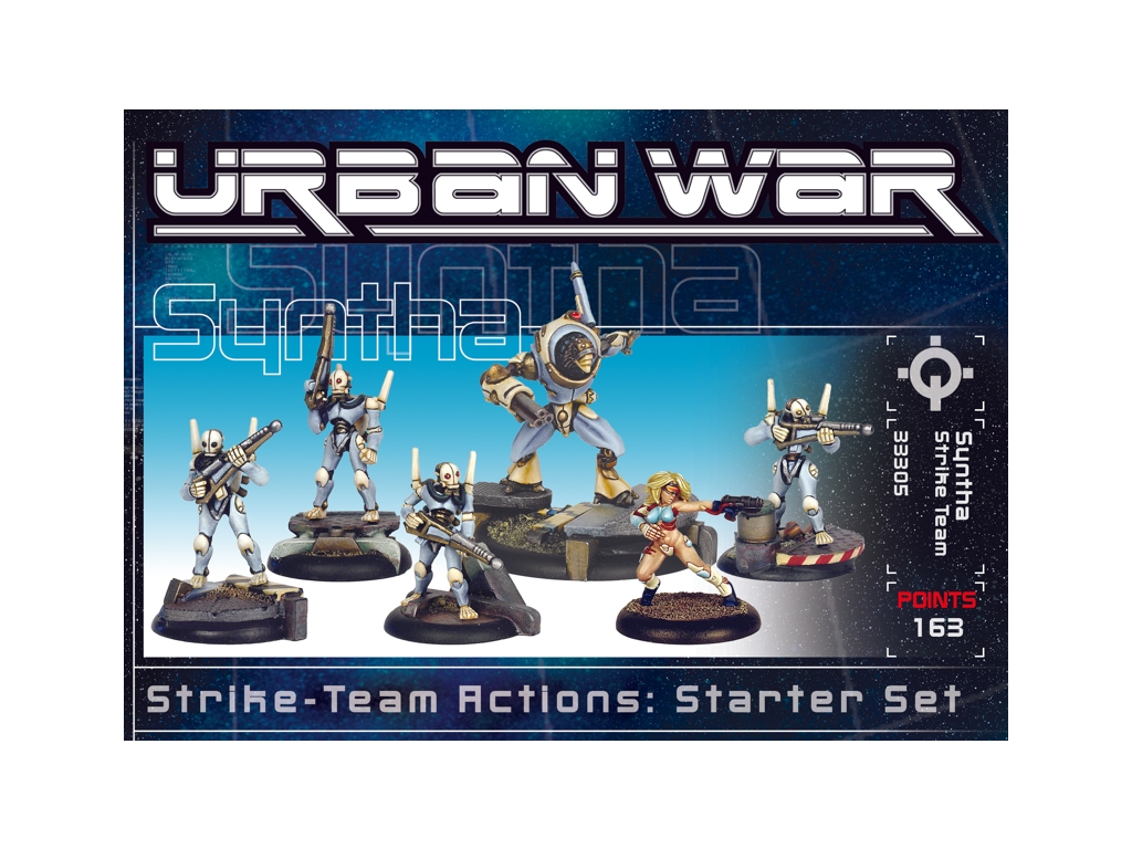 Az Urban War Syntha Strike Team 6 fém modellből álló dobozos készlet, beleértve a vezető és speciális fegyvermodelleket.
