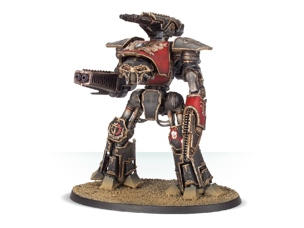 A gargantuan war machine, the Reaver Titan is one of the most common and destructive classes of Battle Titan. Armed with devastating weapons and able to crush enemies under its tread by the score, the ground shakes as the Reaver advances and the enemy is left with a choice: flee or die. Reavers are the heart of the Titan Legions, holding the line or leading the charge as their Princeps demand.