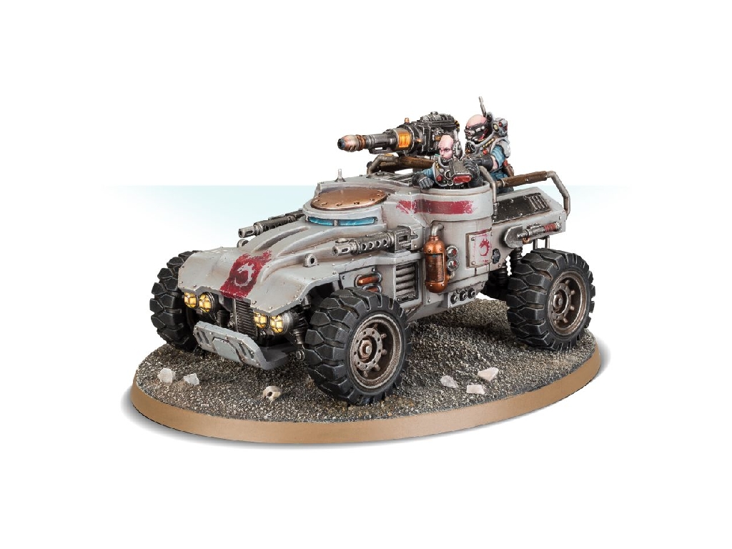 This pack contains a single plastic Achilles Ridgerunner armed with two heavy stubbers, and a choice of either a heavy mining laser, a heavy mortar, or a missile launcher. It comes with a host of other options and optional wargear, and a single 120mm oval base.