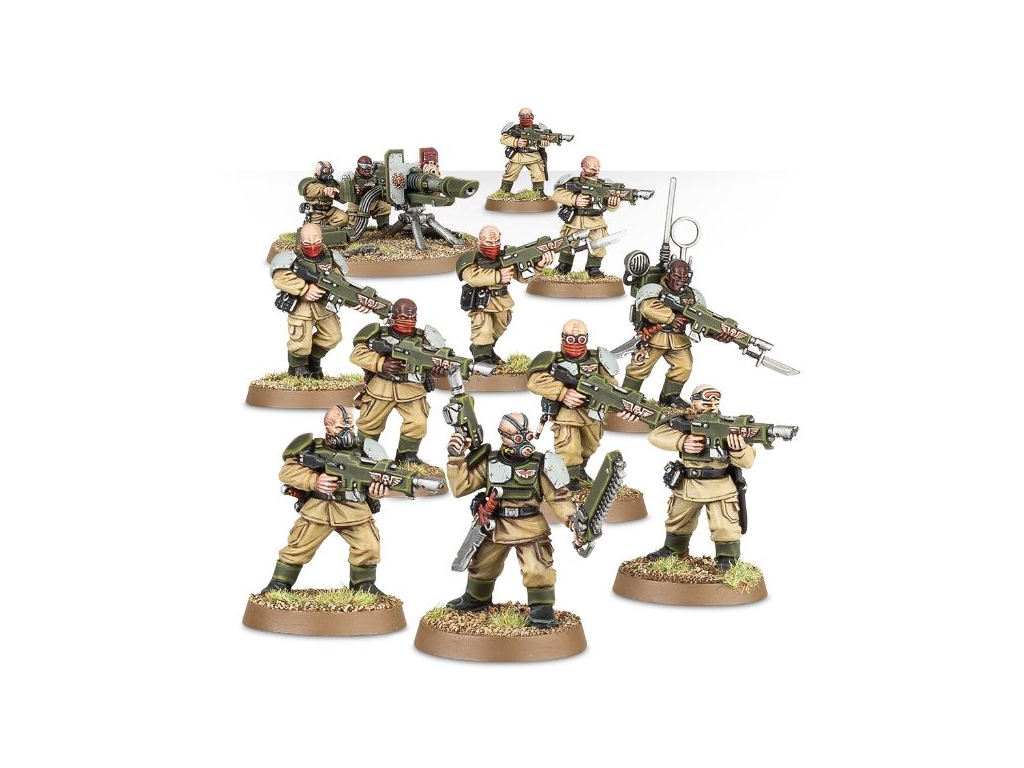 This kit lets you build one unit of Brood Brothers – Astra Militarum troops who have been infiltrated by the Genestealer Cults. Inside, you'll find everything you need to build a squad of Astra Militarum infantry, a heavy weapons team, plus a Genestealer Cults upgrade sprue. The set includes a host of special and heavy weapons, plus a huge number of heads and accessories for customising your Brood Brothers units.