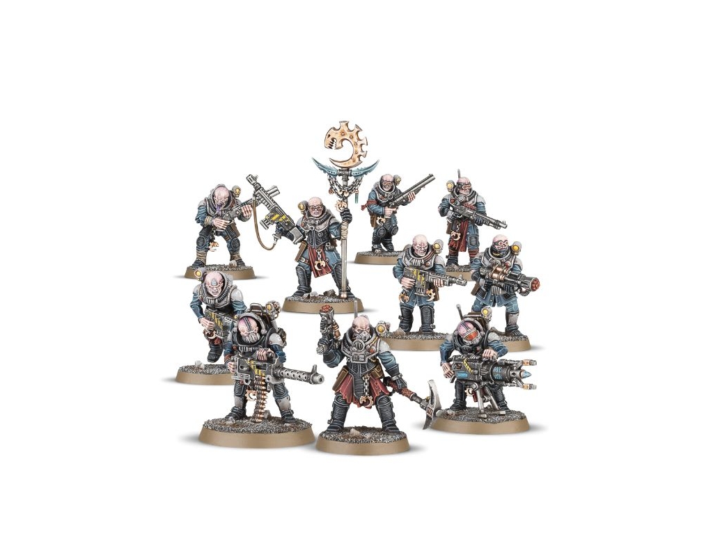 One model can be upgraded to a Neophyte Leader, armed with either a web pistol, autopistol or bolt pistol and a chainsword, power pick or close combat weapon. One model can take a Cult icon.
