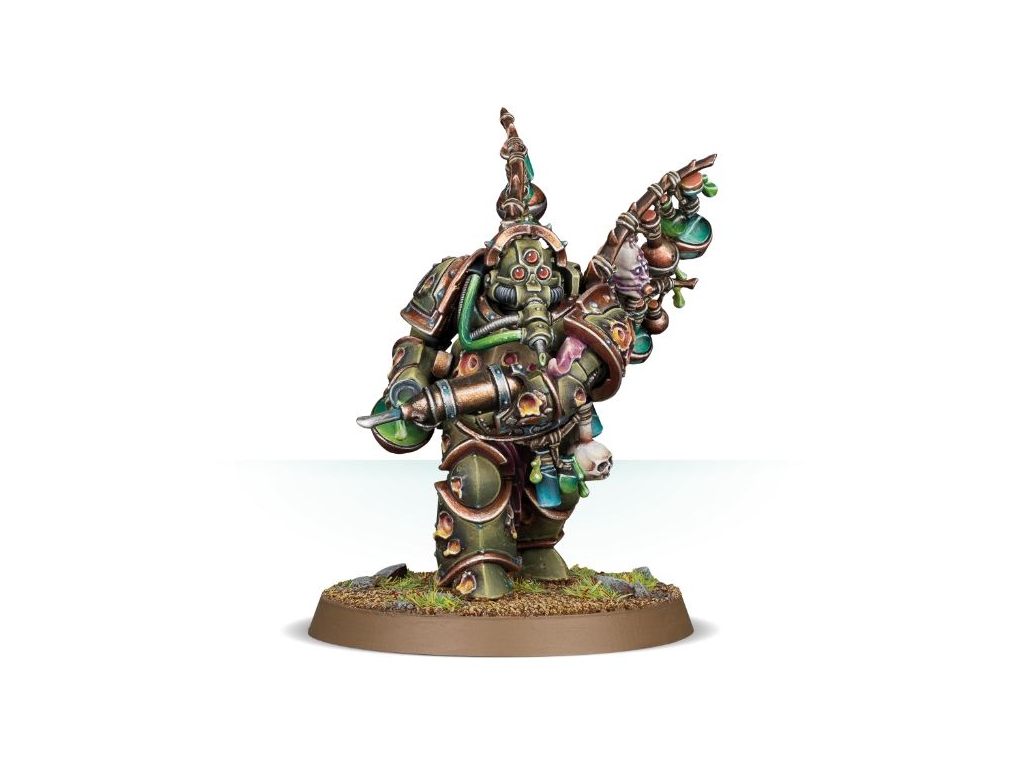 The great labour of the Death Guard is to spread Nurgle’s bounteous gift to every corner of realspace. The Biologus Putrifiers have a vital role to play in this process, for it is they who refine the batches of diseased slurry brewed by the Foul Blightspawn, and distil them to the utmost potency. From their backs dangle racks of blight grenades, churning with the latest strains of noxious plagues. With each volley of hurled ordnance, their epidemic spreads; injector pistols unleashing concentrated doses of foulness into their targets.
