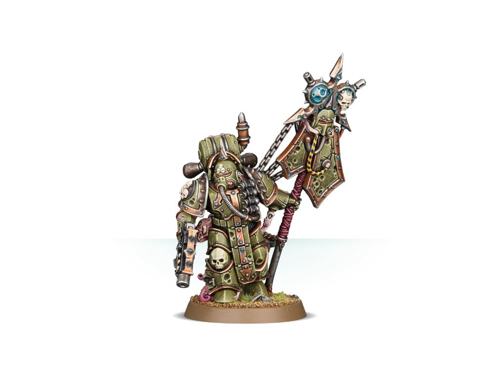 Sworn to Nurgle’s service, Plague Marines have disgusting, rotted bodies that stink of decay. The putrescent slime that oozes from their sores corrodes armour and boils away skin, yet despite their horrific disfigurements they are fearsome warriors indeed. Their rotting brains are inured to the agony of bodily corruption, making them all but immune to the pain or debilitation caused by battle wounds.