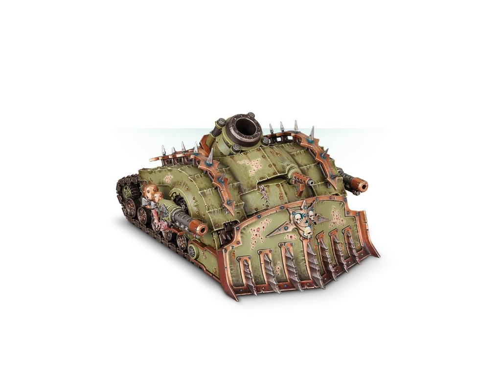 Plagueburst Crawlers are lumbering, formidable siege tanks whose huge ram-blades, thick armour plating and daemonic energies provide them with incredible resilience. Their fearsome plagueburst mortars boast a parabolic fire arc and terrifying range, while the shells they fire combine high-radius explosives with lethal clouds of corrosive spores to inflict damage comparable to that of Imperial Demolisher cannon. The remainder of the Crawler’s weaponry is intended to slaughter the foe up close, spraying diseased slime and hails of vital shells at any who approach.