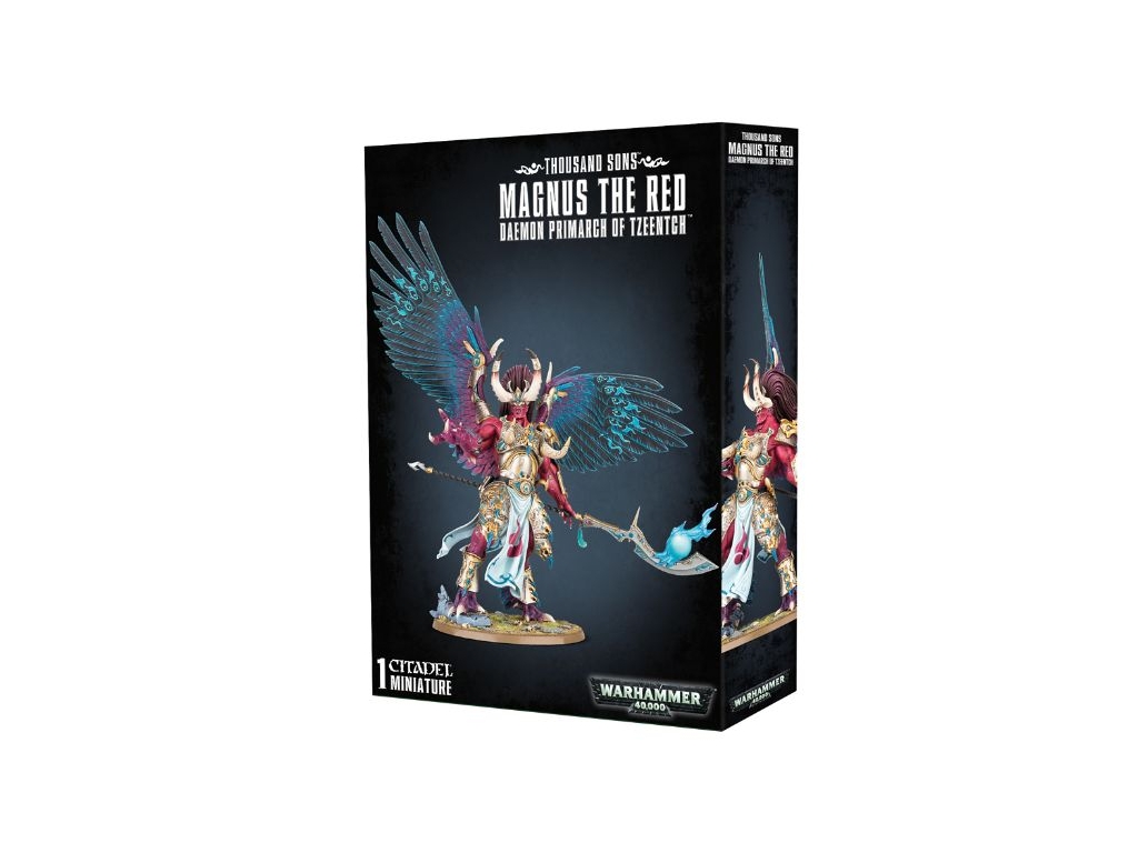 The air screams as Magnus the Red descends from the skies, and stone runs molten beneath his shadow. Cyclopean son of the Emperor of Mankind, his very presence is anathema to logic. To look upon him is to surrender sanity, and when the Crimson King gazes back, destruction is loosed in unimaginable measure. Second only to the Emperor in terms of psychic ability, he rends asunder reality with a sweep of his blade, annihilating even super-heavy vehicles with the sheer intensity of his ire. Then, with a flex of mighty pinions, Magnus the Red is borne aloft, glorying in his unnatural power as he brings fresh calamity to the weaklings who oppose him.