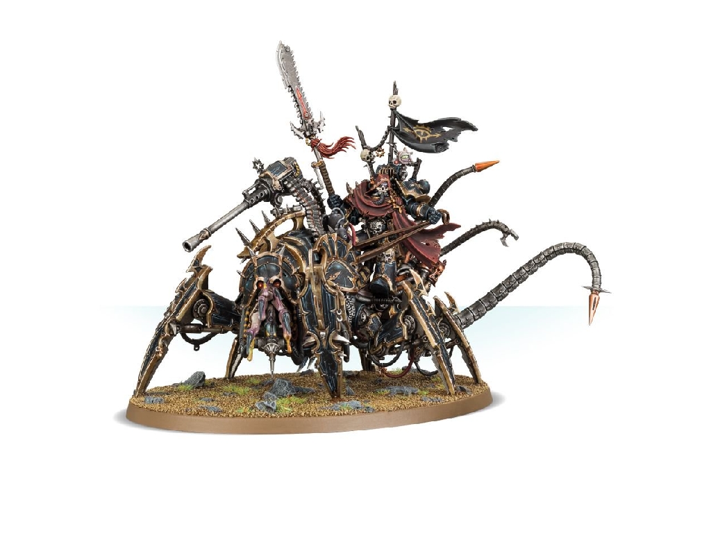 The Lord Discordant bears an enormous impaler glaive and his mechatendrils can lash out at his foes. His scuttling Daemon Engine steed can be equipped with a baleflamer or autocannon, as well as a choice of magma cutter or techno-virus injector.