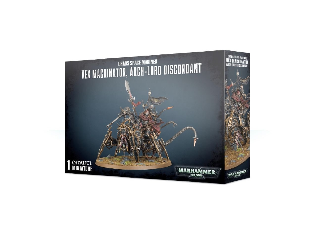 Vex Machinator, Arch-Lord Discordant is a multipart plastic kit and serves as an HQ choice in a Chaos Space Marines army. The Helstalker mount can be equipped with a variety of destructive weaponry, and together they are the bane of enemy vehicles.