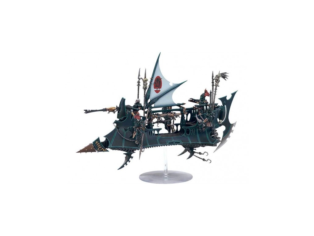 Raiders are the favoured transports of the Dark Eldar. Bladed skycraft, they are lightweight and extremely manoeuvrable. Raiders Travel at extreme speed, using their sword-sharp fins and jagged keels to cut apart the foe, while their prow-mounted heavy weapons punish the foe.