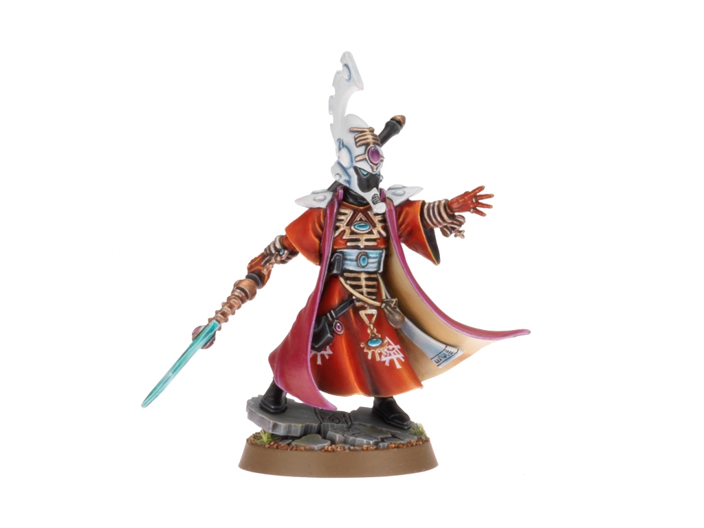 Masters of prediction, the Farseers are the strangest and most visionary of a craftworld's advisors. Even in battle they can perform their divinations, casting the complex wraithbone runes of the Eldar into the air and interpreting changes as the glowing icons orbit around them.