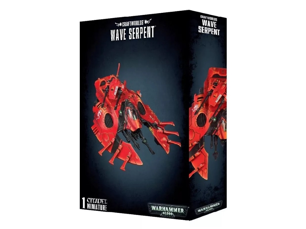This boxed set contains 1 multi-part plastic Aeldari Wave Serpent and includes options for a twin-linked bright lance, twin-linked star cannon, twin-linked missile launcher, twin-linked shuriken cannon and a twin-linked scatter laser turret.