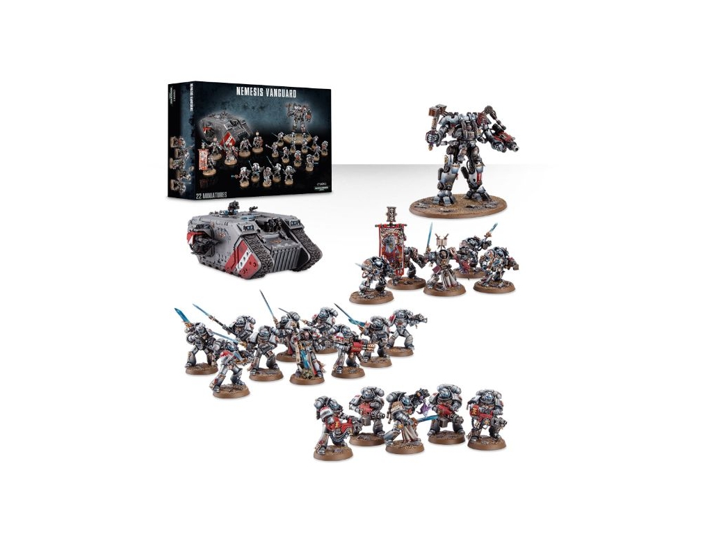 This multi-part plastic box set contains 22 models: a Grey Knight Purgation Squad of 5 miniatures, a Grey Knight Strike Squad of 10 miniatures, Grey Knight Paladin Squad of 5 miniatures, a Space Marine Land Raider and a Nemesis Dreadknight.