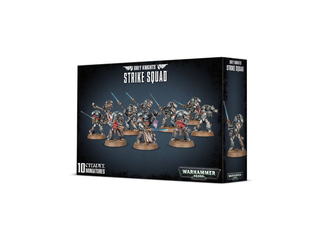 Strike Squads often form the vanguard of a Grey Knights strike force. Equipped with lighter armour than the main Terminator Squads, these veterans strike swiftly and surely, and are able to slip through gaps in the enemy line. At the onset of battle, a Grey Knights commander will invariably task one or more Strike Squads with the capture of vital locations and key objectives, deploying via fixed teleporter to ensure the rapid seizure of isolated or inaccessible locations. These Squads are essential – without their reconnaissance and preparation, the Terminator Squads would be a hammer swung blindly in the darkness.