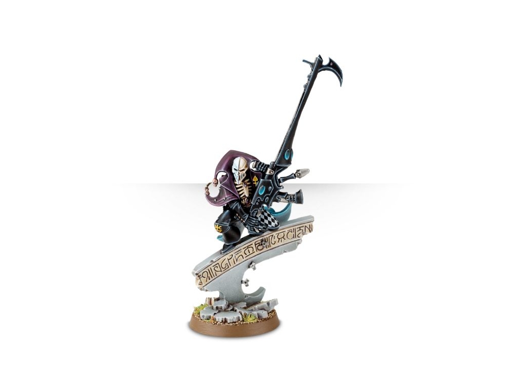 Embracing the role of Death in its entirety, there is no mercy in the heart of a Death Jester. His outsize shuriken cannon reaps a deadly toll on his enemies as each round, impregnated with virulent biotoxins, causes its victims’ metabolisms to spectacularly detonate.