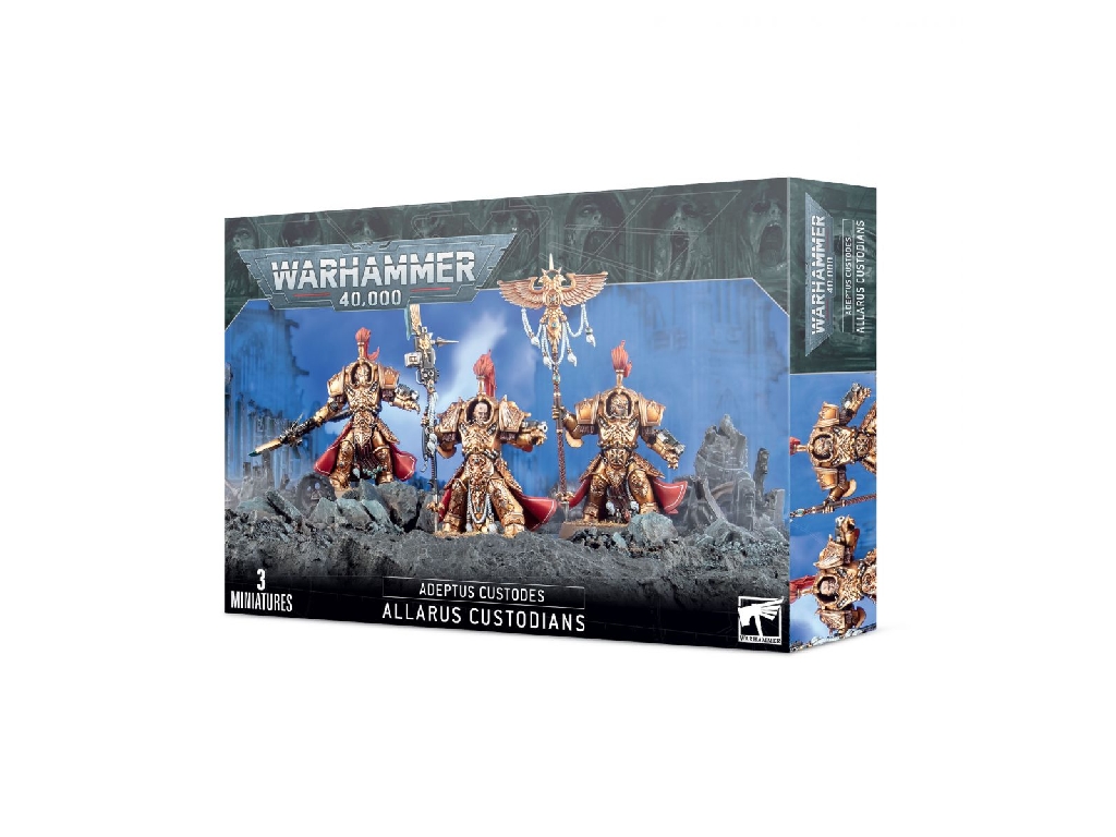 The Allarus Custodians deploy with sudden fury to tear the throat from the enemy army. Where a strongpoint must be cracked wide open, a traitor warship boarded or a foul demagogue slain even as he stands amidst his dedicated bodyguards, there are the Allarus Custodians unleashed. These warriors wear suits of Allarus Terminator plate, expertly crafted armour whose worth can be measured in worlds. Their weapons, too, are formidable, guardian spears twice the height of a man, or castellan axes that can lop the head from an Ork psyker with a single blow. Allarus Custodians eliminate key targets, sow anarchy and confusion through unsuspecting forces and completely destabilise the foe’s formations.
