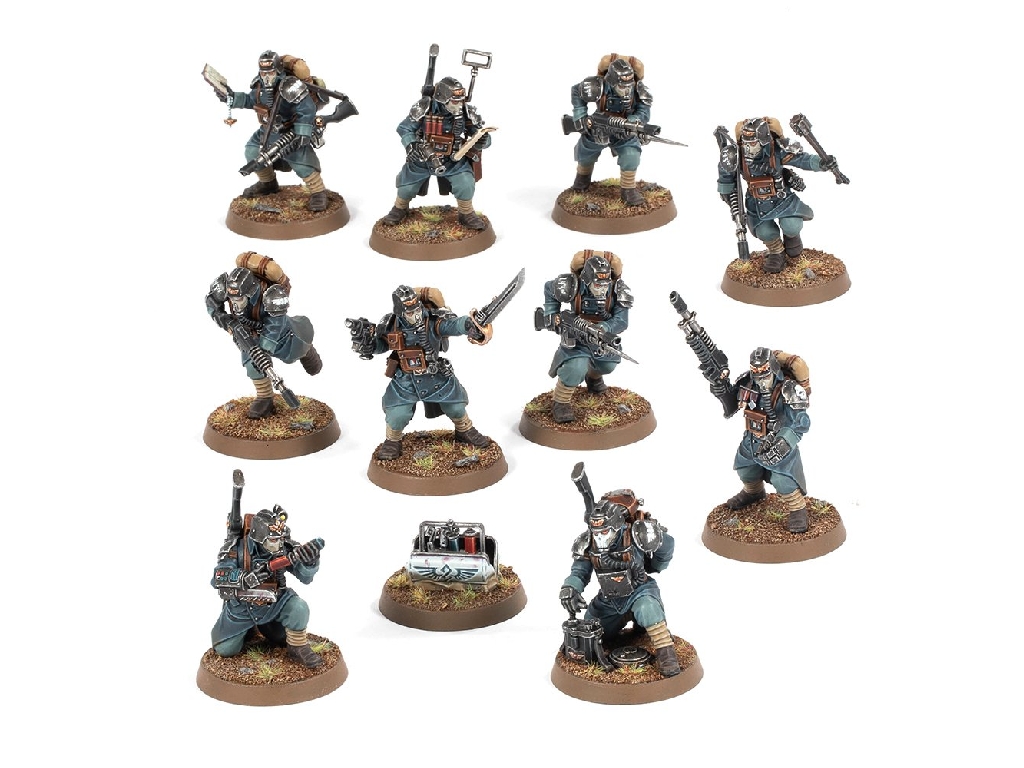 This kit builds a unit of 10 Veteran Guardsman in the uniforms of the legendary Death Korps of Krieg, plus an extra Medikit model. The Veteran Guardsmen box is suitable for games of Kill Team, as well as Warhammer 40,000. One model can be built as a Sergeant Veteran, and nearly every model has a selection of weapon options, allowing them to be built for a variety of tactical roles. You can also build them as a standard Infantry Squad, armed with lasguns.