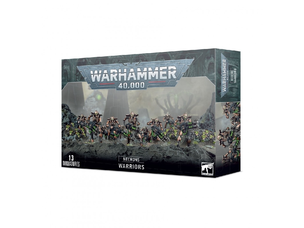 Necron Warriors form the majority of a tomb world's nigh-inexhaustible armies. They are a corps of fleshless mechanoids, ranged in their millions against the vital races of the galaxy. Ancient limbs are corroded with age, yet the strength of their metal sinews has not faded, nor has the hard-wired loyalty to their Overlords.
