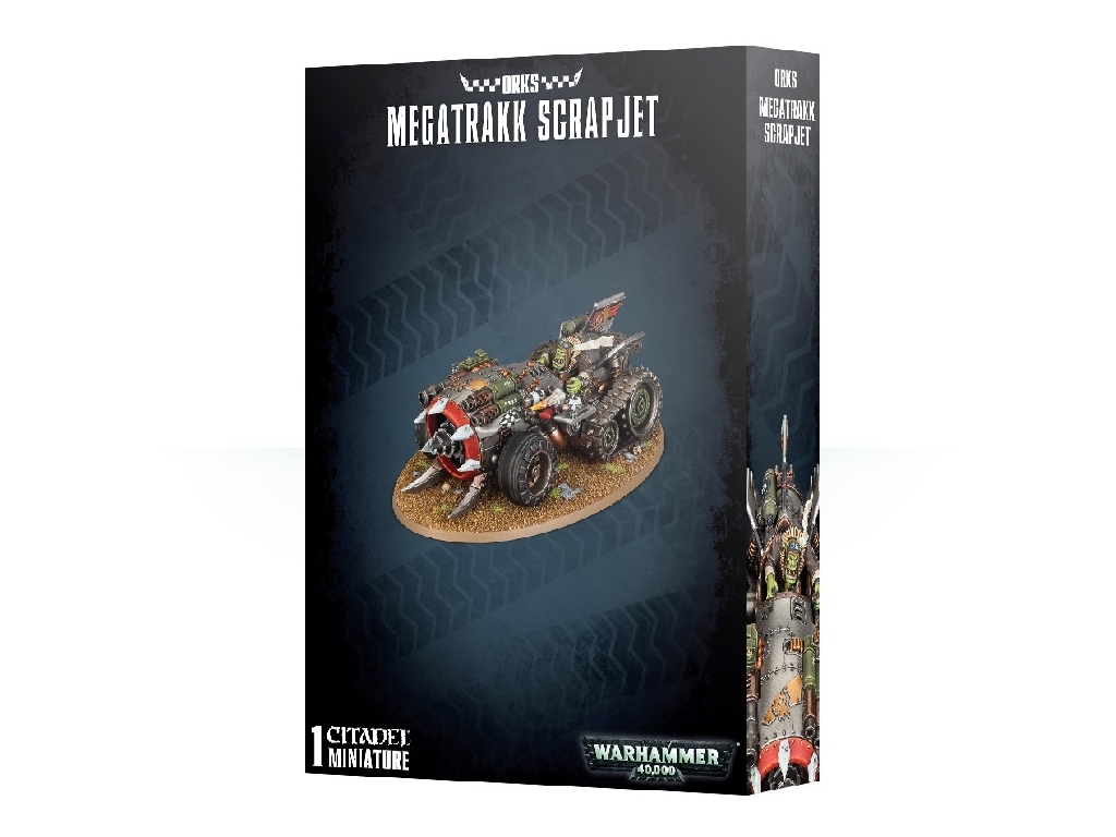 A favourite amongst Speed Freeks and grounded Flyboyz alike, Megatrakk Scrapjets provide rocket-propelled acceleration, impressive firepower and the hilarity of ramming into enemy lines at the helm of what is effectively a gigantic, thrust-driven drill. These vehicles allow former Ork pilots to revel in the dimly-remembered joy of mowing down enemies at point-blank range – a joy which, of course, often caused the Flyboy to crash in the first place. Explosions blossom amidst the enemy as rokkits and missiles collide with their targets, while Grot tail-gunners blaze away with chattering big shootas – the array of weaponry welded, bolted, riveted and lashed onto a Megatrakk Scrapjet is fearsome.