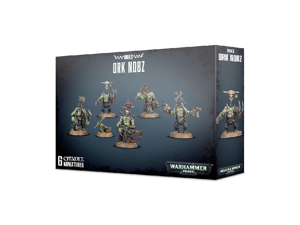 The Orks call their ruling caste Nobz. Nobz are bigger and scarier than other Orks and revel in cruel or casual violence. Nobz lead by example, plunging into the thick of the fighting and breaking skulls left, right and centre. In this way each Nob acts as a sergeant-at-arms, champion, oppressor and role model for the Boyz they lead.