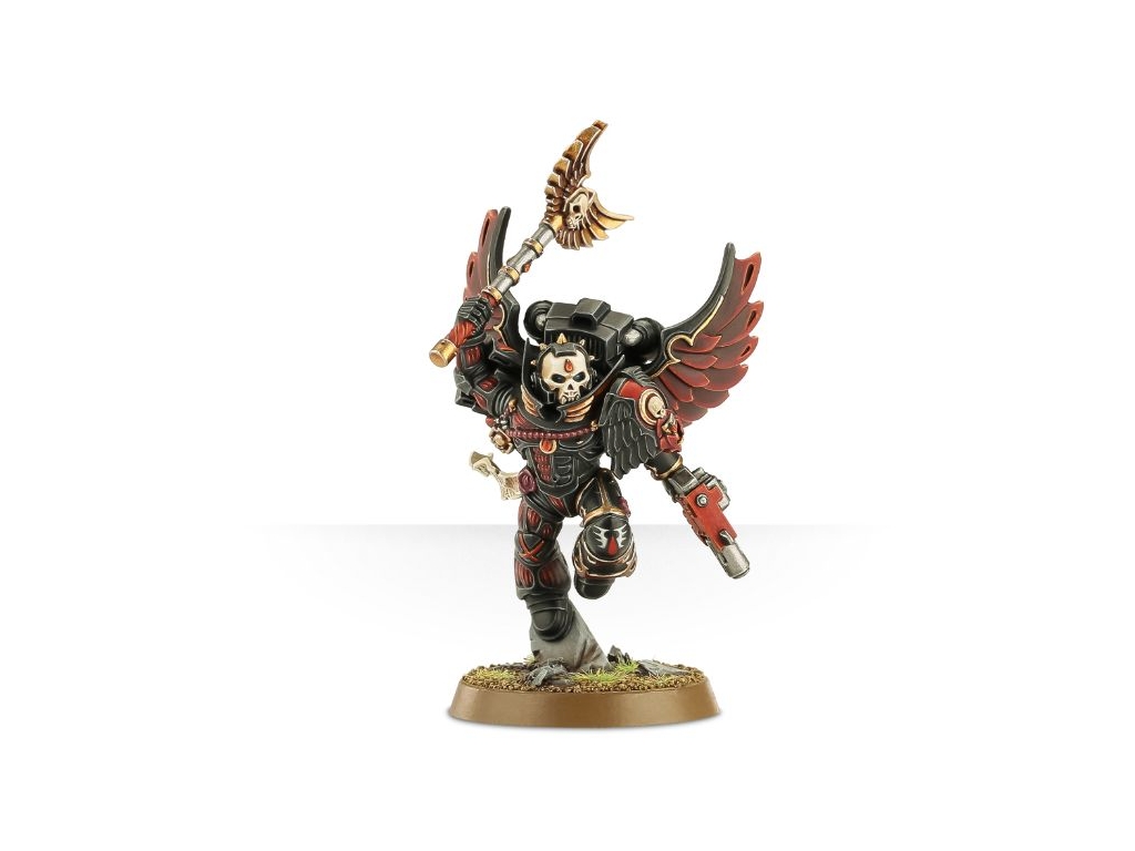 This kit contains all the components necessary to assemble on Blood Angels Chaplain with Jump Pack, a single-pose miniature. Armed with an Inferno Pistol and wielding a Crozius, the tread of his boots features a Blood Angels symbol - grind this icon into the faces of your foes! Supplied with one Citadel 32mm Round base.