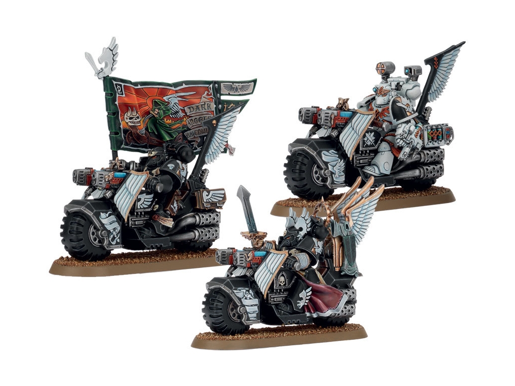 Those who survive in the Ravenwing long enough learn to take mobile warfare to the next level. If they can pass the Seven Rites of the Raven, they will be inducted into the Black Knights, the Inner Circle of the 2nd Company. Bike-mounted Command Squads consist of experienced Ravenwing Black Knights who form a swift bodyguard around a mounted officer, or execute other specialised missions.