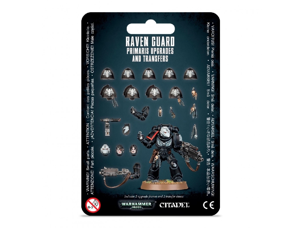 Show your allegiance to the stealthy sons of Corax with this set of upgrades and transfers for your Primaris Space Marines. It can be used to upgrade a variety of squads with iconography and details specific to the Raven Guard Chapter.