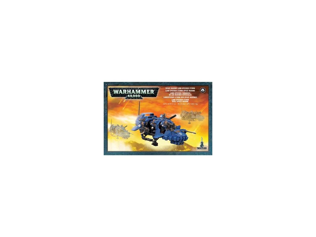 This box set contains one multi-part plastic Space Marine Land Speeder Storm and six multi-part plastic Space Marine Scouts. This 99-piece set includes: a Cerberus launcher, a heavy bolter and a range of head, weapon and arm options for the Scout crew. Also included are a host of accessories including: pouches, grenades, scopes, packs and knives. Model supplied with a large flying base.
