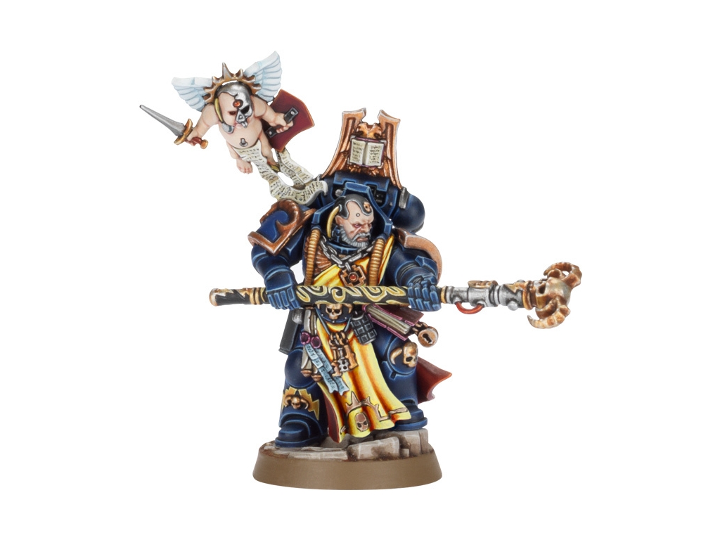 This multi-part plastic kit contains 9 components with which to make a Space Marine Librarian armed with a force stave. It also features an optional Warrior Cherub.