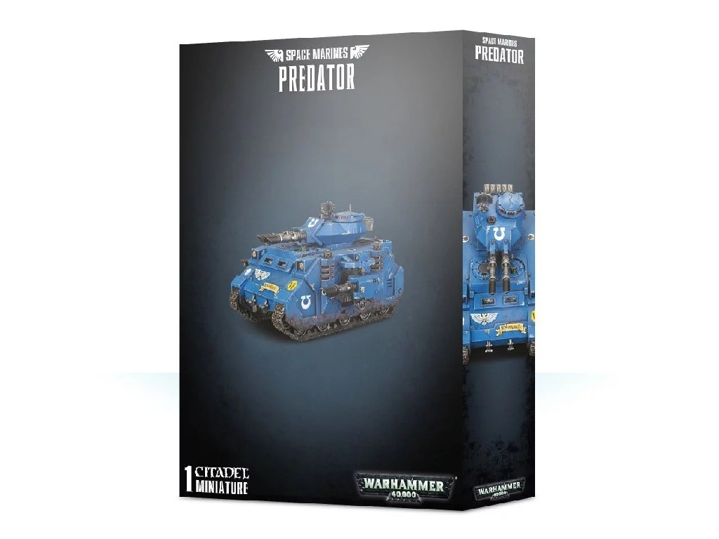 TThe Predator is the main battle tank of the Adeptus Astartes, boasting formidable firepower and reinforced armour. Capable of being fitted with a number of weapon loadouts, this versatile war engine performs admirably whether spearheading armoured assaults, hunting enemy armour or escorting Space Marine infantry assets or transports through hostile territory.